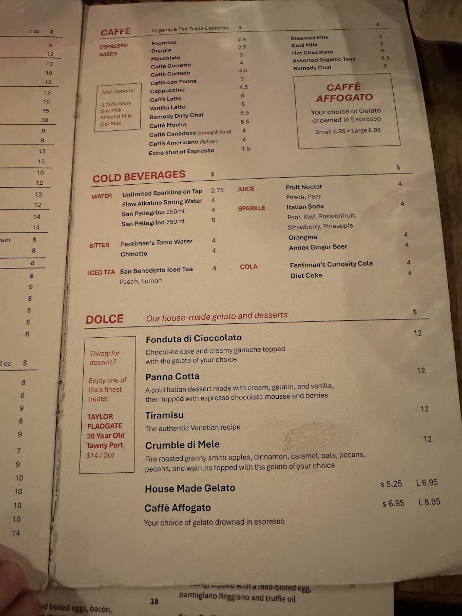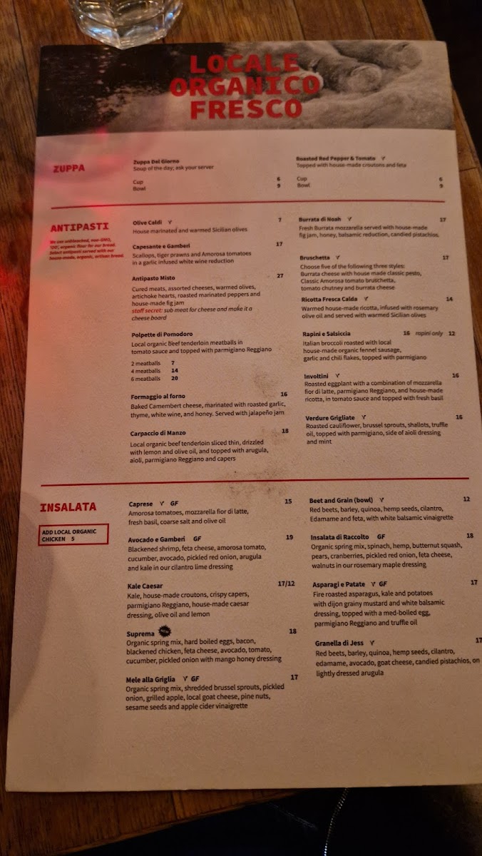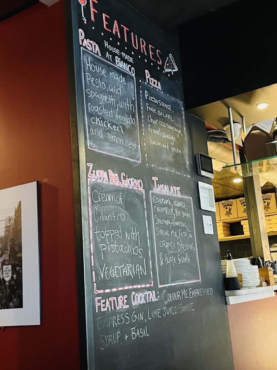 I came here the other day for the very first time and it was such a lovely experience. The restaurant is small making for an intimate and quiet dining experience but it’s not too cramped. Our server was seriously so kind and sweet. She was very accommodating and friendly (we needed a bigger table because we ordered so much food and she slid another table alongside ours right away). The food came out fast and was absolutely delicious. Their pasta special caught my eye right away. It had lemon butter, garlic, white wine, smoked salmon, scallops, lobster, crab, parsley and green onion. It was absolutely delicious. My boyfriend ordered a few of the pizzas also amazing. We had their fig gelato for dessert and it too was delicious. I would 100% recommend this place. It’s a little hidden gem that is cozy and romantic, has phenomenal food and great service.